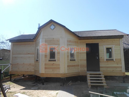 Такая одноэтажная баня 4.8х9 может быть построена из бруса. Ориентировочный срок строительства 19 дней.