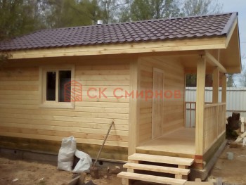 Такая одноэтажная баня 6х6 может быть построена из бруса. Ориентировочный срок строительства 15 дней.