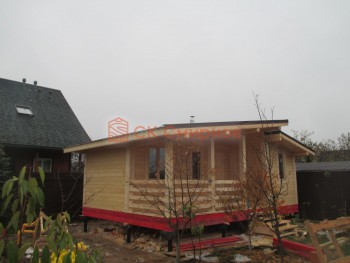 Такая одноэтажная баня 5.5х6 может быть построена из бруса. Ориентировочный срок строительства 17 дней.