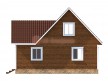 На фото представлен проект деревянного дома №108 габаритами 8.5х9 метров и отличной планировкой общей площадью 102 квадратных метров. Можно выделить несколько особенностей проекта: терраса, туалет, ванная, санузел. Дом с мансардой, может использоваться как зимний, для постоянного проживания, коттедж.