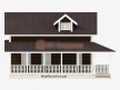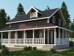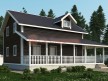 На фото представлен проект дачного дома №174 габаритами 7х9 метров и отличной планировкой общей площадью 125 квадратных метров. Можно выделить несколько особенностей проекта: терраса, веранда, туалет, ванная, санузел. Дом с мансардой, может использоваться как зимний, для постоянного проживания, коттедж.