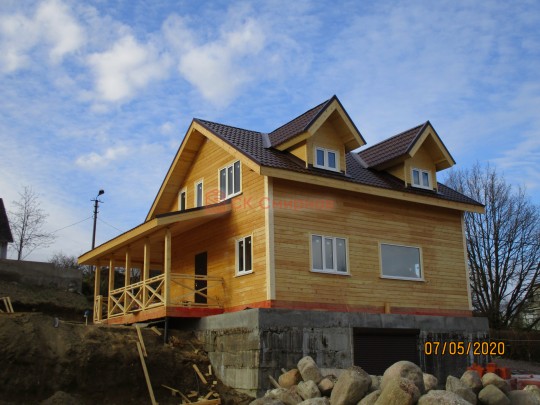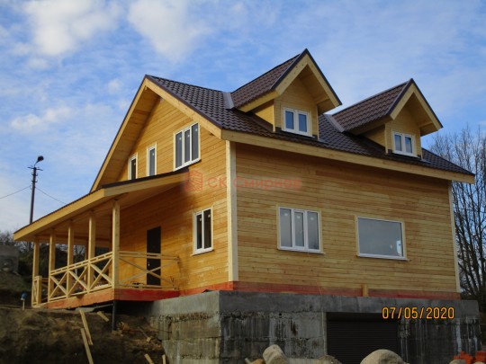 Потолки, стены вансардного каркасного этажа ( если он есть ) обшиваются сухой вагонкой.