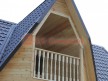 На фото представлен проект аккуратного дома №71 габаритами 6х7 метров и отличной планировкой общей площадью 69 квадратных метров. Можно выделить несколько особенностей проекта: терраса, балкон, эркер, туалет, ванная, санузел. Сруб с мансардой, может использоваться как дачный.