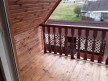 На террасе при условии что она есть делаем перила из строганной доски со всех сторон, столбы террасные также строганные, а не обрезки профилированного бруса с шипом и пазом. Домкратики на столбах для дальнейшей регулировки. Балясины будут сделаны аккуратно. Обратите внимание что в дешёвых случаях это может быть и будет просто вагонка прибирая к неотесанной доске снаружи и столбы будут не квадратные а просто профилированный брус как на видео.