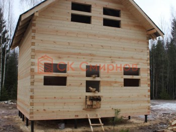 Оригинальный дом 6х6 метров можно построить из бруса под усадку. Ориентировочный срок строительства 10 дней.