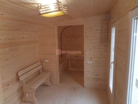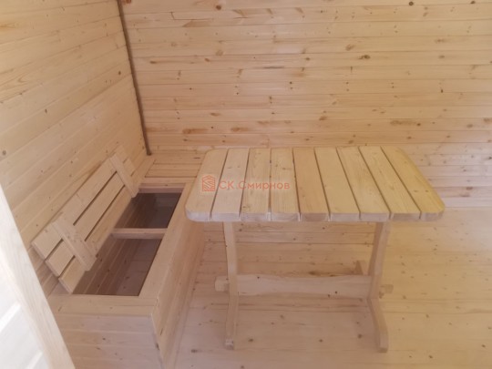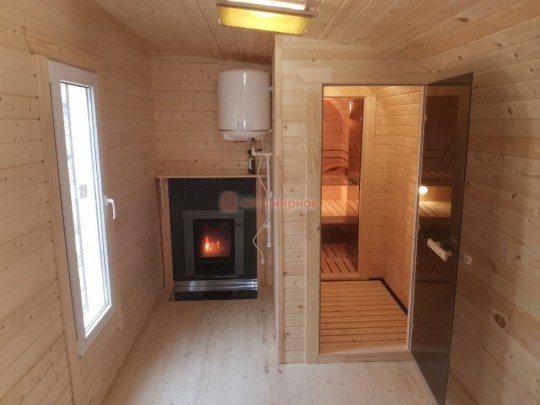 Для строительства аккуратной бани 6х6 метров СК Смирнов разработал проект №149 с обустроенной парной и комнатой отдыха. По планировке общая площадь составляет 24 квадратных метров. Мы строим бани под ключ с полной отделкой снаружи и внутри.