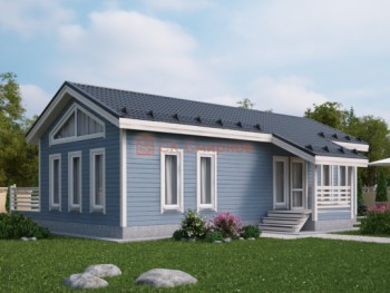 На фото представлен проект деревенского дома №272 габаритами 7.5х10 метров и отличной планировкой общей площадью 75 квадратных метров. Можно выделить несколько особенностей проекта: терраса, туалет, санузел. Домик одноэтажный, может использоваться как дачный.